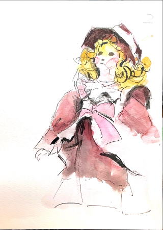 画友の葦ペン画に魅せられて葦ペンの会に体験参加させてもらった。葦ペンとインクをお借りして会員が持参した人形を描いてみた。遅筆を自称する私が短時間に3体も描けたことにびっくりした。ペン先を遊ばせるようにして描いていけばいいだけで、正確に描こうとか上手く描こうとかいう邪念を捨て、興味の赴くまま自由奔放に描いていけばいいという。それなら楽しく描けるだろう。良い体験をさせてもらえた。なんだか病みつきにりそうだ。