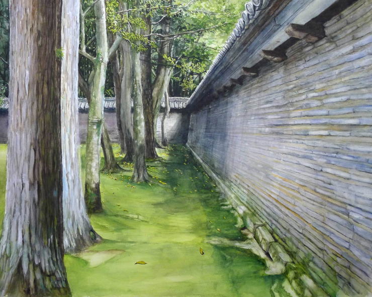 前作「拝殿前の一隅」を30号に描き直したもの。これまで最大で20号しか描いたことがなかったので、思い切って30号に挑戦してみた。静寂な現場の空気感を表すよう心がけたのだが、web上では前作と同サイズになってしまうのが残念。まだ大サイズへの描き方に慣れていないのに、次はもっと大きなサイズも描けるのではないかと思えてくる。