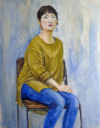 青いセーターの女性 |