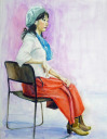 朱色ニットの女性 |