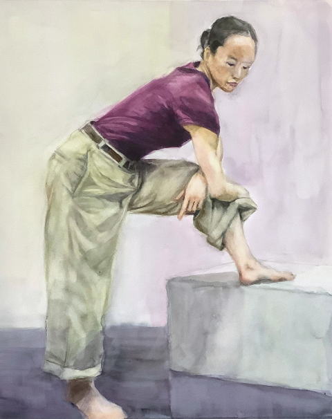 片足を椅子に乗せたポーズが面白かった。椅子を台に変えてみた。