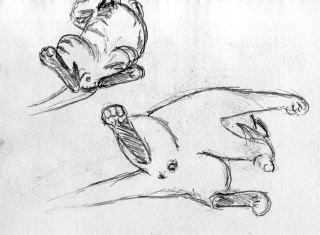 ↑2008/9 安心しきって寝ているところをスケッチ。ネコも窓枠を枕にして寝ることを発見。その内に寝返りを打って上のようなあられもない姿に。